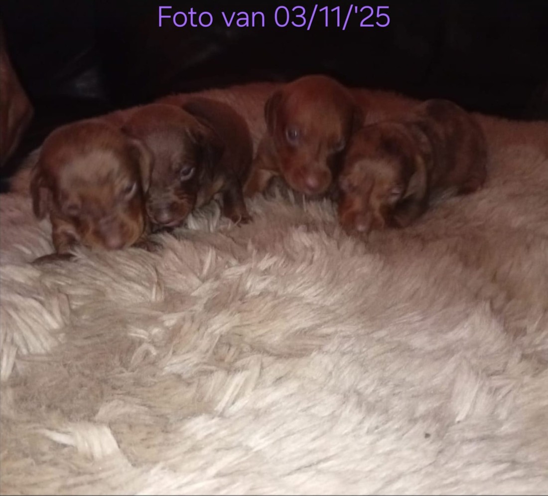 Baby nieuws kortharige dwergteckel " Marieke " Particulier geboren in Belgie is mama geworden op 13/10/'25 van 4 deze cuties.